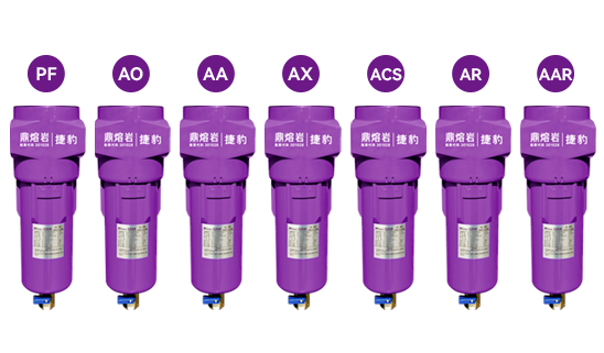 AX:超高效過濾,去除大于0.01um的塵?帕,水霧和油霧,油霧殘余含有量不超過0.001mg/m?(21°C)、0.01ppm(w)